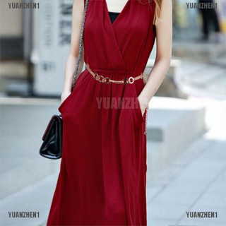 [YUANZHEN1] Thắt Lưng Dây Xích Bằng Kim Loại Đính Pha Lê Vàng Cho Nữ