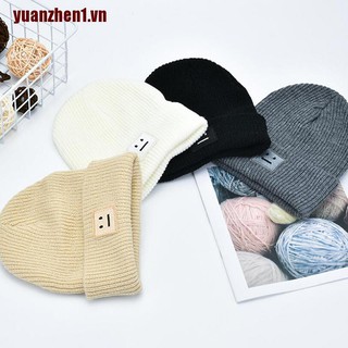 [YUANZHEN1] Mũ Beanie Dệt Kim Thêu Nhãn Mặt Cười Dễ Thương Cho Người Lớn Unisex