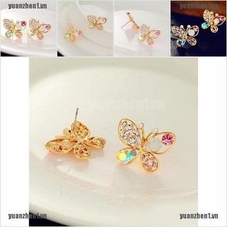 [YUANZHEN1] Bông Tai Hình Bướm Rỗng Đính Pha Lê Sang Trọng