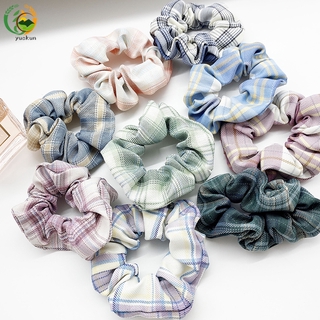 【YUKV】Ikat Rambut Bahan Kain Motif Kotak-Kotak Untuk Wanita Celef
