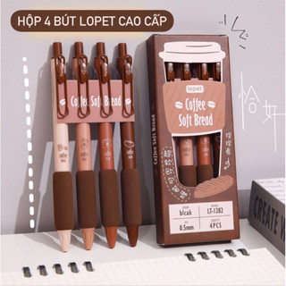 Hộp 4 bút bi Lopet hàng cao cấp có đệm tay gam màu coffe ngọt ngào