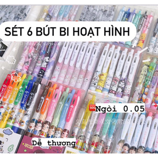 Sét 6 bút bi nhân vật hoạt hình dễ thương ngòi 0.05mm