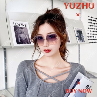 (YUZHU) Kính Râm Thời Trang Phương Tây Không Viền Kim Loại Màu Gradient Cho Nữ