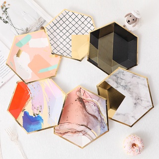 Set 20 Đĩa Giấy Lục Giác Màu Đồng Dùng Một Lần Phong Cách Bắc Âu