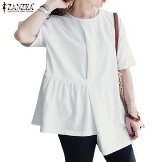 ZANZEA Áo Thun Nữ Ngắn Tay Cổ Tròn Form Rộng Thời Trang