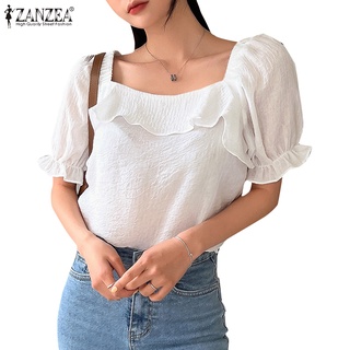 Áo kiểu Zanzea tay ngắn cổ vuông phong cách Hàn Quốc cho nữ