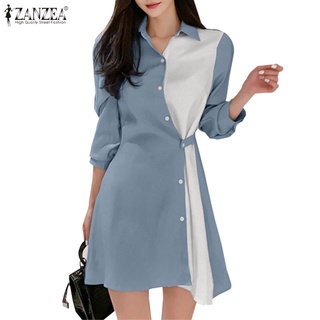 Váy sơ mi ZANZEA tay dài phối cổ tay phong cách Hàn Quốc thanh lịch thời trang giản dị cho nữ