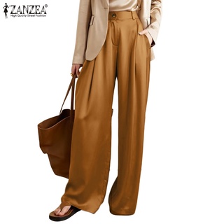 Quần dài ZANZEA bằng lụa satin ống quần rộng thời trang thường ngày dành cho nữ
