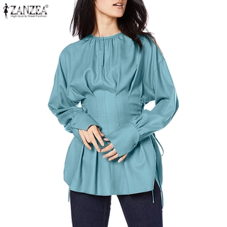 Áo Kiểu ZANZEA Cổ Tròn Tay Dài Kiểu Xếp Li Phối Dây Thắt Cho Bạn Nữ