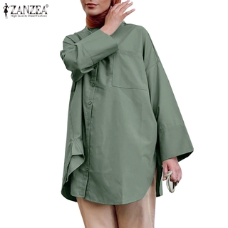 Áo Sơ Mi ZANZEA Màu Trơn Cổ Bẻ Tay Dài Dáng Rộng Phong Cách Hồi Giáo Thường Ngày Dành Cho Nữ