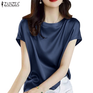 Áo kiểu ZANZEA tay ngắn cổ tròn thiết kế đơn giản phong cách Hàn Quốc nữ tính thanh lịch