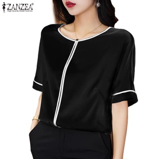 Zanzea Áo Sơ Mi Tay Ngắn Cổ Bẻ Bằng Satin Thời Trang Dành Cho Nữ