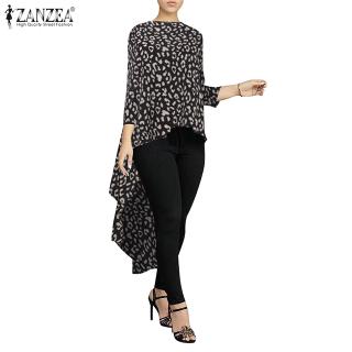 Áo kiểu ZANZEA cổ lật in họa tiết da báo ghép vải thời trang cho nữ