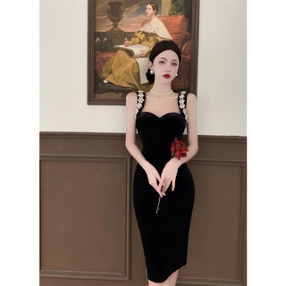 Đầm Hai Dây Màu Đen Phong Cách Pháp Cổ Điển Thời Trang Mùa Hè Cho Nữ 2022
