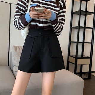 Quần short nữ cạp cao ống rộng ZENA lưng cao 2 khuy bấm vải tuyết mưa Q86