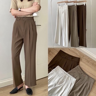 Quần baggy nữ lưng cao công sở ZENA 2 khuy siêu xinh Hàn Quốc Q03