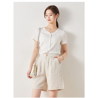 Quần đùi nữ lưng cao ống rộng mặc nhà ZENA vải đũi xuất Hàn Quốc DLQ11
