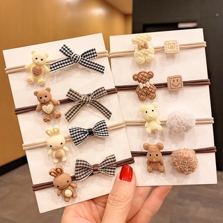 Dây Buộc Tóc Cao Su Co Giãn Họa Tiết Gấu Hoạt Hình Phong Cách Hàn Quốc