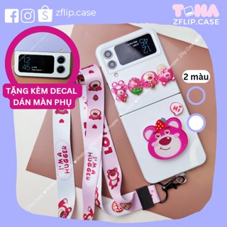 [Mới] Ốp lưng Samsung Z Flip 3 Z Flip 4 sticker gấu dâu kèm dây đeo và decal Z Flip3 / ZFlip3 / Z Flip4/ ZFlip4