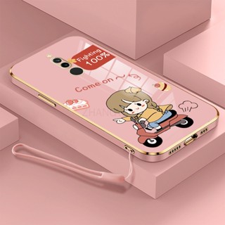 Ốp Điện Thoại TPU Silicon Mạ Điện Hình Cô Gái Chạy Xe Máy Kèm Dây Đeo Cho Redmi 8 Redmi 8a