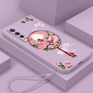 Ốp Điện Thoại Silicone Mềm Họa Tiết Hoa Mẫu Đơn Có Dây Đeo Cho vivo y20 y12s y20s y20i y12a
