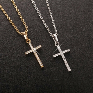 Vòng cổ Vàng / Bạc Mặt Thánh Giá Đính Đá Pha Lê Thời Trang Cho Nam Và Nữ