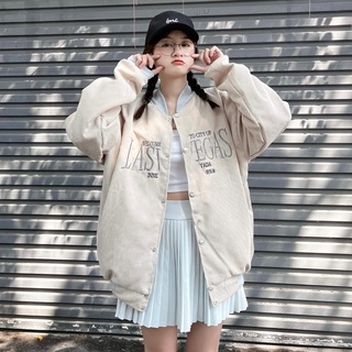 Áo Bomber Chất Nhung Tăm 2 Lớp Thêu Chữ Nổi Màu Đen Và Nâu Dáng Rộng Dưới 70kg Siêu Hot