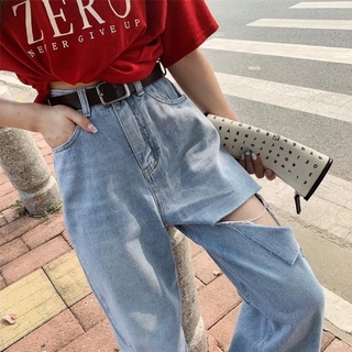 Quần Jean Ống Rộng Rách Gối Quần Dài Nữ Kiểu Dáng Cá Tính Siêu Ngầu Lưng Cạp Cao Dễ Phối Kèm Áo Croptop