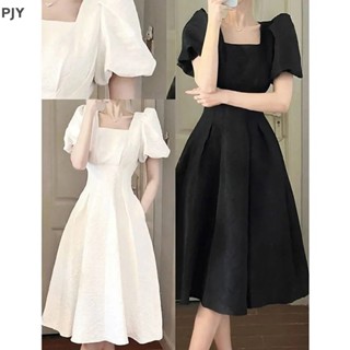 Đầm Midi Dáng Chữ A Tay Phồng Cổ Vuông Màu Trơn Phong Cách Pháp Thời Trang Mùa Hè Thanh Lịch Cho Nữ PJ