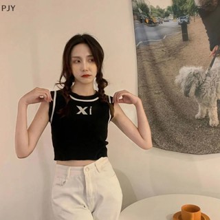 Áo Dệt Kim Sát Nách Dáng Ôm In Chữ Thời Trang Mùa Hè Quyến Rũ Cho Nữ PJ