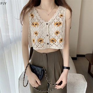 Áo Croptop Dệt Kim Không Tay Màu Sắc Trơn In Họa Tiết Hoa Cúc Thời Trang Mùa Hè Quyến Rũ Cho Nữ PJ