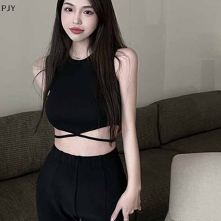 Áo Không Tay Cổ Tròn Màu Trơn Dây Chéo Gợi Cảm Cho Nữ PJ