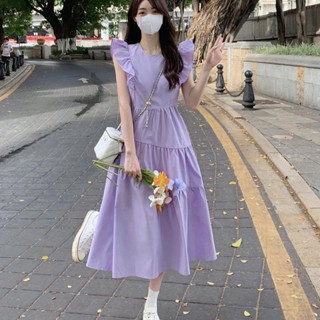 Đầm Dáng Chữ A Tay Bay Màu Trơn Ngọt Ngào Thời Trang Mùa Hè Cho Bạn Gái PJ