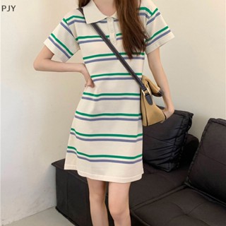 Đầm Ngắn Tay Cổ Bẻ Họa Tiết Kẻ Sọc Thời Trang Mùa Hè Cho Nữ PJ