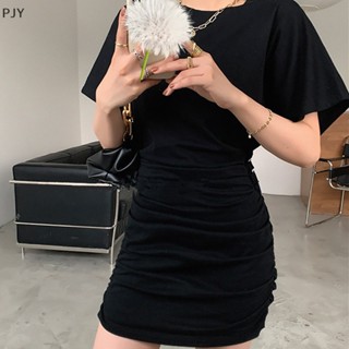 Đầm PJY Tay Ngắn Cổ Tròn Dáng Rộng Màu Trơn Thời Trang Mùa Hè Đơn Giản Dễ Phối Đồ Cho Nữ