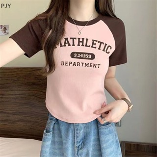 Áo Thun Tay Ngắn Cổ Tròn In Chữ Màu Sắc Tương Phản Thời Trang Mùa Hè Cho Nữ PJ