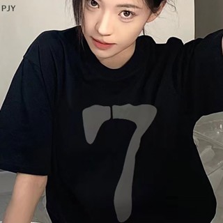 Áo Thun PJY Tay Ngắn Cổ Tròn Dáng Rộng In Số Phong Cách Retro Mỹ Thời Trang Mùa Hè Cho Nữ