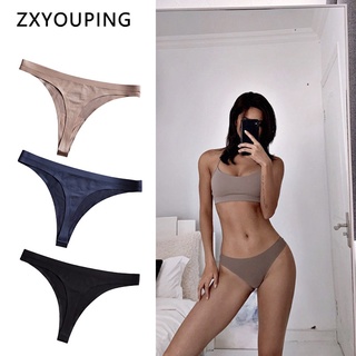 Quần lót liền mạch vải lụa lạnh cạp thấp màu trơn thời trang sang trọng dành cho nữ cỡ S-XL