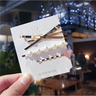 Kẹp Tóc Ba Món Đính Nơ Ngọc Trai Hình Trái Tim Phong Cách Hàn Quốc Cho Nữ