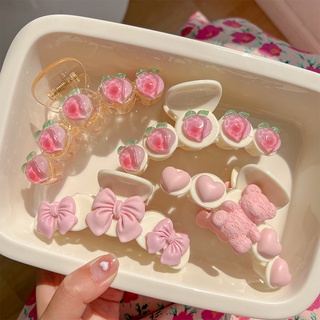 Kẹp Tóc Hình Nơ Họa Tiết Trái Tim / Gấu Dễ Thương Phong Cách Hàn Quốc Cho Nữ