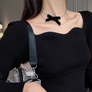 Dây chuyền nhung hai lớp đính đá thời trang hàn quốc đơn giản