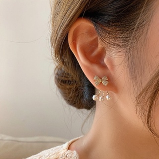 Bông Tai Hình Nơ Đính Ngọc Trai Lấp Lánh Phong Cách Hàn Quốc Cho Nữ