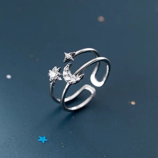 Phong cách hàn quốc sáng bóng trăng sao hai lớp mở nhẫn phụ nữ