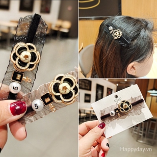 Kẹp tóc mái hoa trà pha ren Dongdaemun khí chất Hàn Quốc