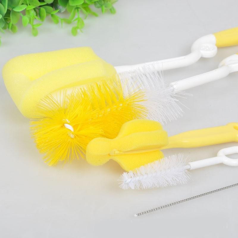 ***Set 5 chi tiết: 1 cọ rửa có đầu mút (28cm) có thể rửa đáy bình, 1 cọ đầu mút có dây gân (17cm), 2 cọ có mút xốp (17cm) sử dụng cho bình và núm tránh trầy bình, 1 đầu mút (9cm) rửa bình nhỏ.