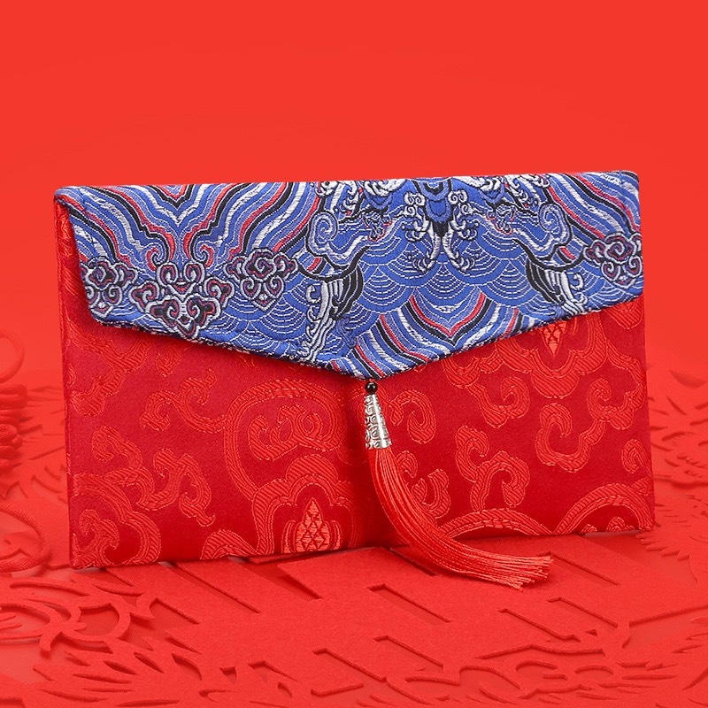 ** Thông tin sản phẩm - Chế tác bằng phương pháp Thủ Công - Hoa văn Rồng thêu nổi sang trọng, mang đến tài khí, thịnh vượng. - Tua đỏ rực rỡ: Phước lành, may mắn cho người thân, đối tác, đồng nghiệp… - Thể hiện tấm lòng và sự trân trọng của người Tặng với người thân yêu. - Chất liệu: Vải thổ cẩm hoa văn Rồng - Đường may chắc chắn, bền, đẹp - Size: 17*9cm ( rộng hơn tờ 500k để thẳng, có thể đựng được 50 - 60 triệu) ===================================