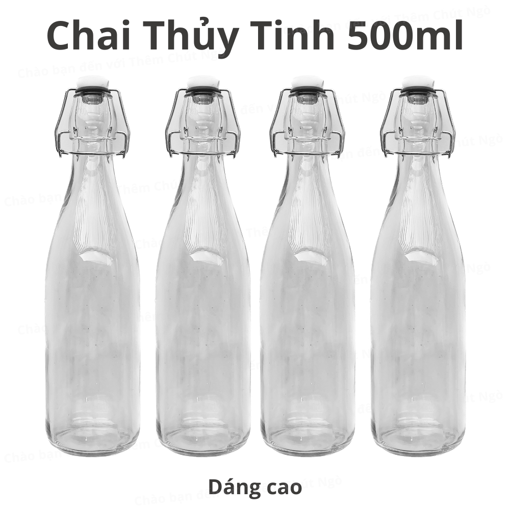 Giới thiệu Chai thuỷ tinh nắp gài làm F2 kombucha 500ml chai tròn dáng cao