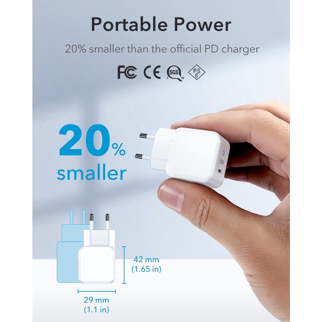 Điện Thoại & Phụ Kiện > Pin Gắn Trong, Cáp và Bộ Sạc > Cáp Sạc và đầu chuyển đổi > SIÊU BỀN Cốc Sạc Nhanh USB C ESR PD 20W Sạc Nhanh QC 3.0 Cốc Sạc Nhanh 20W Nhanh cho điện thoại máy tính bảng