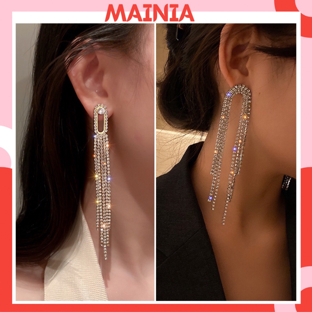 Giới thiệu [Siêu Đẹp] Bông Tai 2 Hàng Dây Đá Lấp Lánh Đơn Giản Sang Chảnh Thanh Lịch Dự Tiệc Mainia Shop
