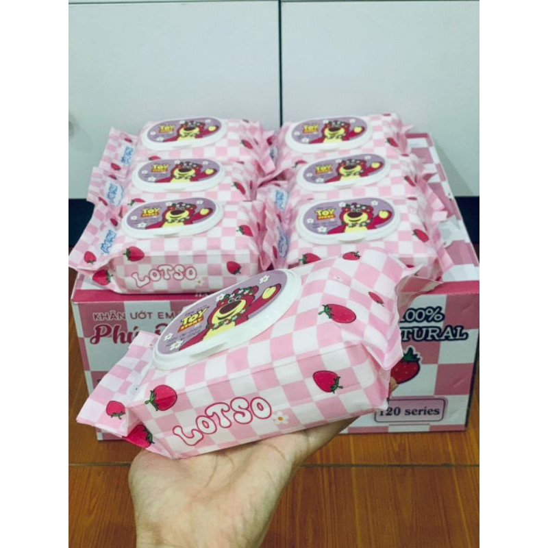 💥Kho sale nên e gom đc zá tốt cho chị em nhà mìnhh đây ạ 😍 1 thùng 24 gói Khăn Ướt Gấu dâu losto toy story phú đạt hot hit năm nha , Kháng Khuẩn nun